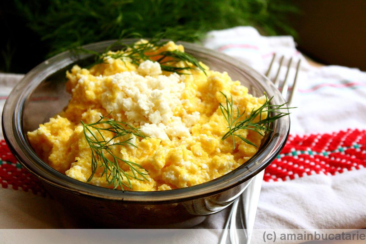 Eu nu am gustat pana acum aceasta minunatie. Faceam mamaliga traditionala si o mai serveam langa lapte (cu cacao), o mai faceam la cuptor, asezata in straturi cu branza telemea si slanina prajita (jumari), dar am descoperit in balmos o minunatie care m-a facut sa cred putin mai mult in posibilitatile bucatariei romanesti traditionale.