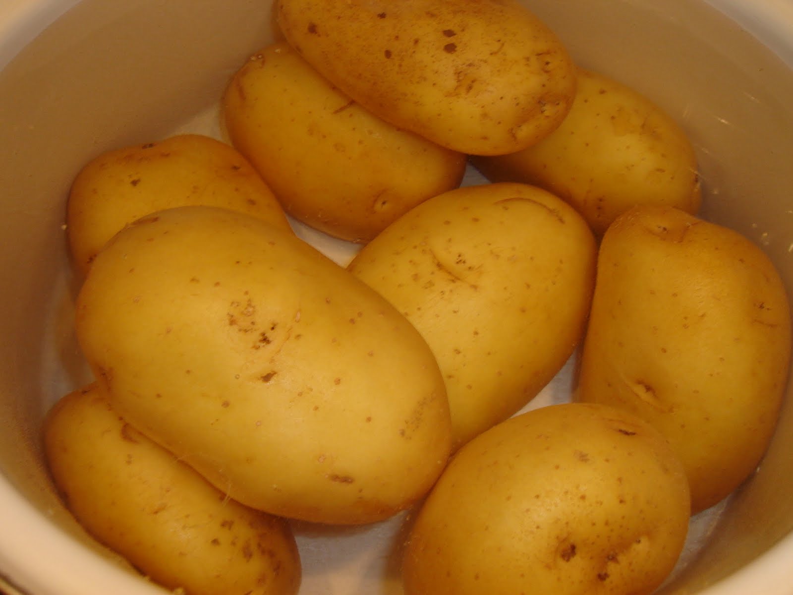Cartofii se spala bine si se pun la fiert in apa cu sare.