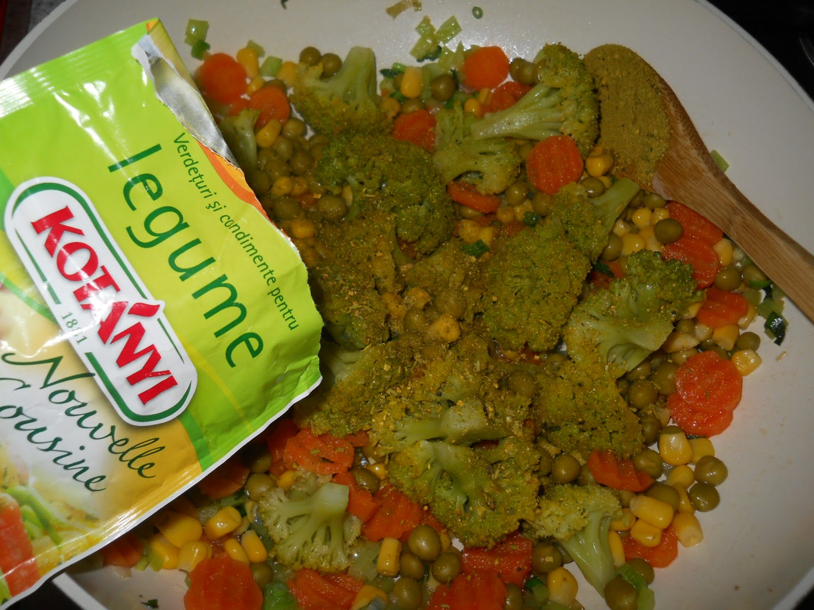 Am asezonat cu o lingura de condimente pentru legume din gama Nouvelle Cuisine de la Kotanyi.