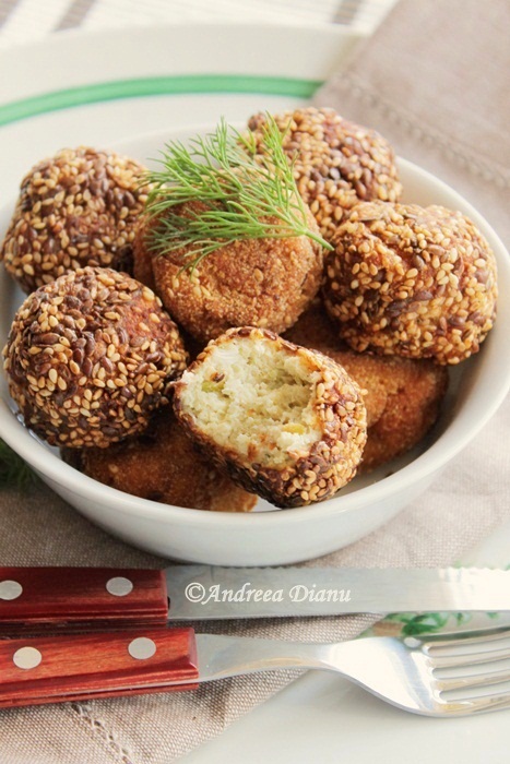Din compozite se formeaza chiftelute cu mainile unse cu ulei. Fiecare chifteluta sa trece prin amestecul de susan, seminte de in si pesmet. Chiftelele se pot trece doar prin pesmet.