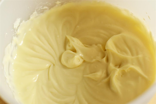 strecuram frisca si aruncam florile de levantica. (frisca va capata o culoare usor albastruie de la flori, dar nu e problema, se va pierde culoarea in timp :) )