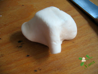 Fiecare bucata de prajitura am "imbracat-o" cu fondant din marshmallow, a carei reteta v-am prezentat-o aici.