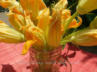 This is for me a premiere. I am sure that everybody knows about preparing zucchini blossoms, but I heard about this only half a year ago. And my reaction was : "What???!!! Me to eat flowers? I don't think so. " Since than my culinary preferences changed radically, so I wanted to give a chance to this dish. I started with something basic: mozzarella and anchovy. It was good, not thrilling, however I will make them again. Maybe in another combination.