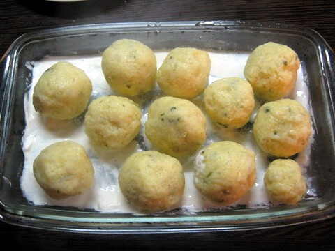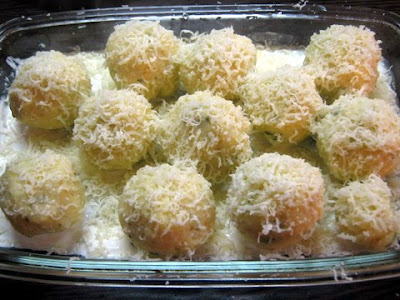 Bagam tava la cuptor pana se rumeneste branza deasupra. Servim cu patrunjel verde.