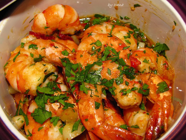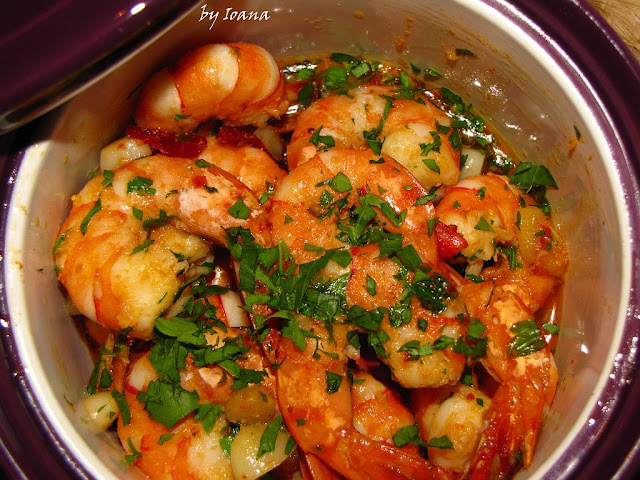 Dupa 4 luni nebune am avut si eu o duminica libera si am profitat.Cum suntem mari amatori de crustacee si cam tot ce vine din mare/ocean si avand niste "bestii ochioase" dar delicioase am optat pentru un pranz simplu dar super mega gustos.