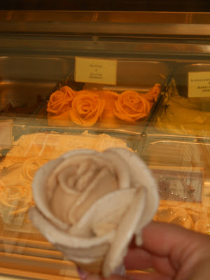 Noi n-am avut lacate decat pe valize, la altele in plus nu ne-am gandit, dar toate ne-am pus aceeasi dorinta: sa mancam rapid o inghetata!!! Asadar, grabite sa ne indeplinim dorinta, ne-am indreptat spre Gelarto Rosa, o gelaterie in care toate inghetatele iti erau oferite sub forma de trandafiri.