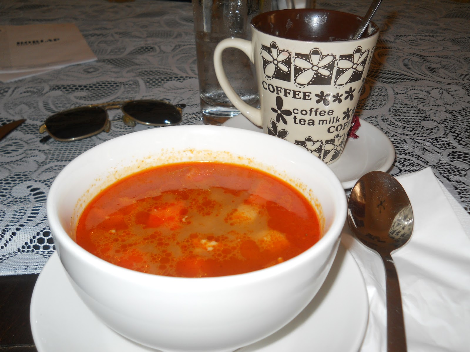 Ce-am servit? Banuiesc ca toti va veti intreba acest lucru, iar eu, constiincioasa am sa va satisfac curiozitatea: o cafea maaaare de tooot, cum nu am baut niciodata in niciun restaurant de pe unde am fost...alaturi de un gulas de miel.