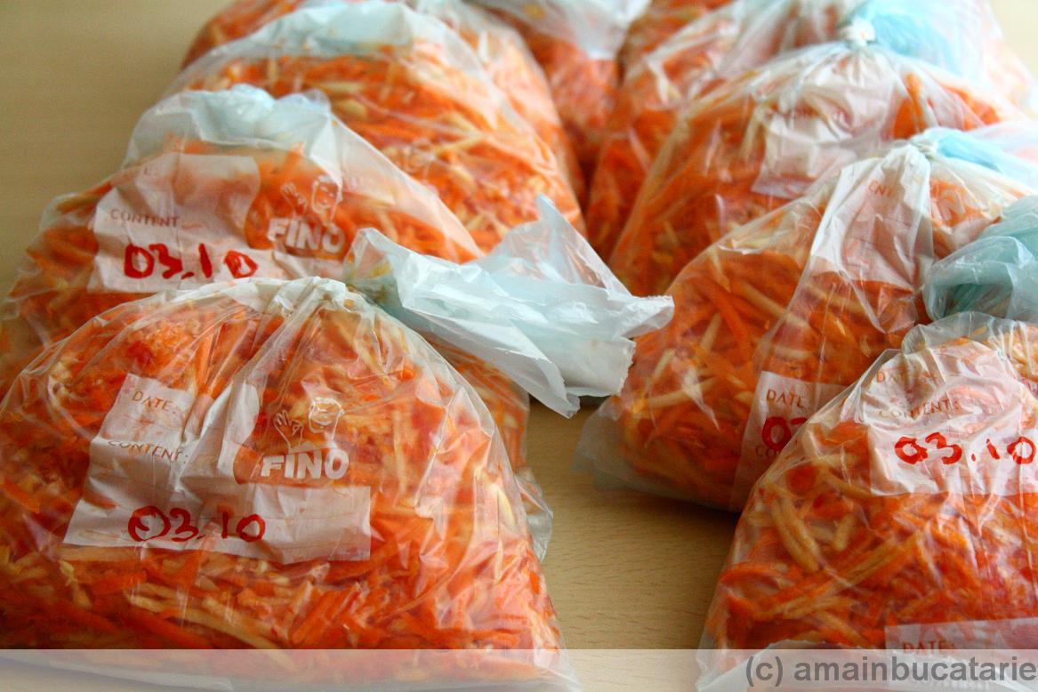 2. In al doilea rand eu va sfatuiesc sa folositi pungi speciale pentru congelator. Puteti bineinteles folosi si simple pungi alimentare, dar asta inseamna ca inainte de folosire va trebui sa decongelati legumele altfel punga va ramane in toate cotloanele libere lasate de legumele date pe razatoare. Cu punga speciala pentru congelator, puneti scoate legumele din ea de indata ce o scoateti din congelator si pot fi adaugate imediat la mancare.