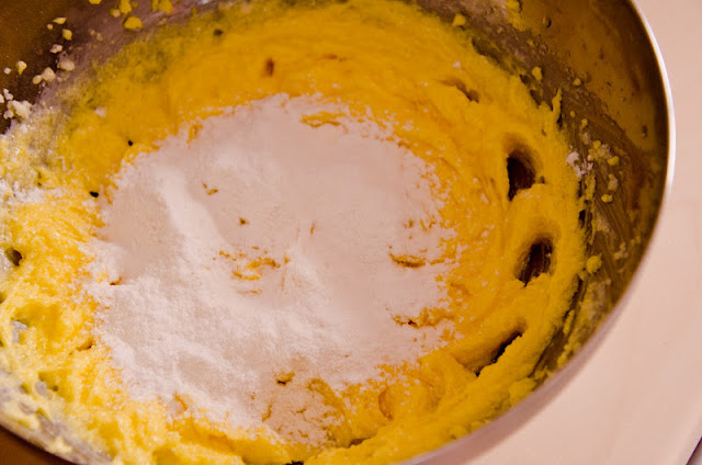 Mai intai incalziti cuptorul la 180 grade C. Intr-un castron cerneti faina si amestecati-o cu praful de copt si sarea, lasati deoparte. Mixati untul la temperatura camerei impreuna cu zaharul.