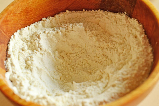 Intr-un castron amestecam faina cu 1/2 lingurita sare, numai o lingurita de zahar si drojdia. Facem o gropita in mijlocul amestecului de faina.
