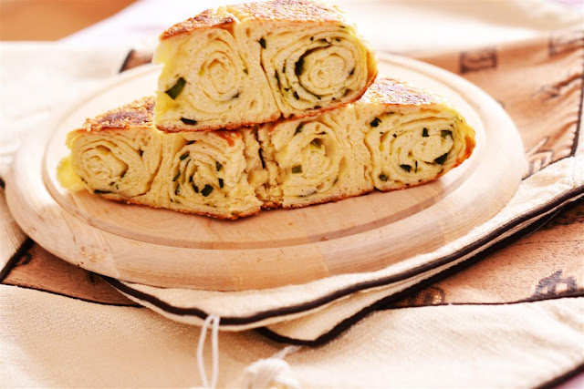 Privind noi toti la painica asta cu ceapa verde, ne ducem cu gandul la Turtitele chinezesti cu ceapa pe care le-am postat acum ceva timp. Nu stiu care dintre ele este mai renumita in Shanghai: painica sau turtita cu ceapa verde. Ambele sunt delicioase! Numai ca textura lor difera. Azi va povestesc despre cum o painica poate sa creasca la fel de frumos si in tigaie, fara a o coace in cuptor. Daca turtita cu ceapa este crocanta si usor elastica in interior, painica cu ceapa ne minuneaza cu gustul ei , este crocanta la exterior, moale si pufoasa la interior, desfacandu-se in fasii multe si bune impanate cu ceapa. Dar, sa nu va mai fac prea multa pofta. Haida la treaba!