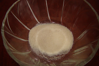 Dupa ce s-au pus si boabele de struguri,se pregateste gelatina.Se pune la inmuiat in 8 linguri de apa.