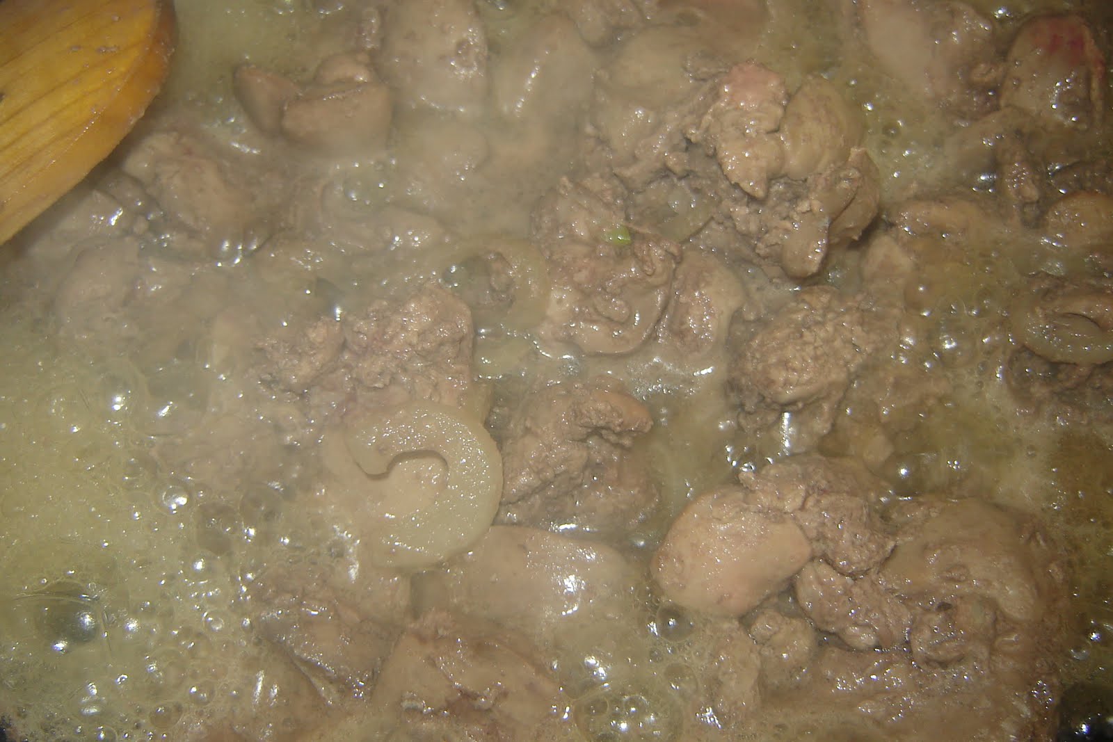 Intr-o tigaie se pune ulei si se caleste ceapa.Cand devine sticloasa se pune ficateii.Se lasa sa fiarba,pana cand apa ce au lasat-o scade aproape de tot.Se adauga apoi vinul,sare si piper dupa gust si se lasa sa fiarba,iarasi,pana cand lichidul scade aproape de tot.