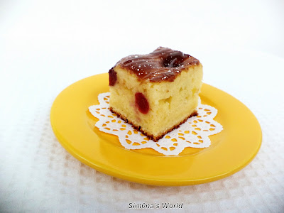 am pus din loc in loc visine din visinata, scurse in prealabil si am dat tava