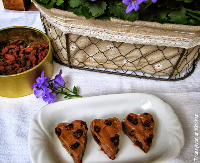 5. Tiza mea, Liana, de la Transylvanian Kichen, a preparat o Ciocolata de casa cu merisoare si goji. , sub forma de inimioare. <3