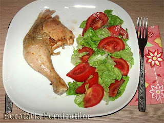 Servim cu salata, ca doar e vara. Caloriile sunt cunoscute deja pentru carnea de pui, asa ca nu are rost sa le mai mentionez.