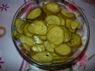 - tăiem castraveciorii cubuleţe sau rondele subţiri şi îi stoarcem de surplusul de oţet.
