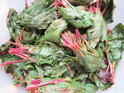 2. Spalam loboda, eliminam cotoarele si o punem la oparit in vasul cu apa fierbinte pentru 2-3 minute.