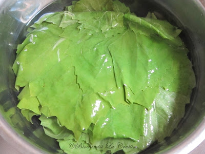 3. Spalam frunzele de vita de vie si le oparim 1-2 minute, apoi le scoatem si pe ele in apa rece. Dupa ce s-au racit complet le punem intr-o sita la scurs.