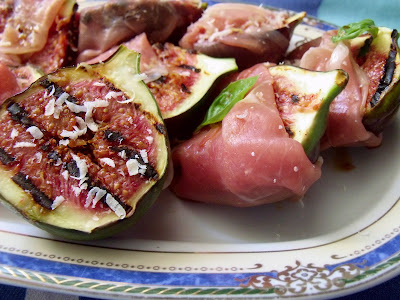 se iau citeva smochine(egale cu numarul de felii de sunca din pachet),se taie in 2 si se coc citeva secunde pe gratarul incins ,le impachetam asa fierbinti in sunca de serrano(cite 1/2 de felie pentru fiecare 1/2 de smochina),le stropim cu otet balsamic si razuim si un pic de parmezan deasupra,plus citeva frunzulite de busuioc,gustarea e gata,daca nu conduceti masina,un strop de vin adauga un plus magnific(eu am gustat un deget de shiraz),va invit si pe voi: