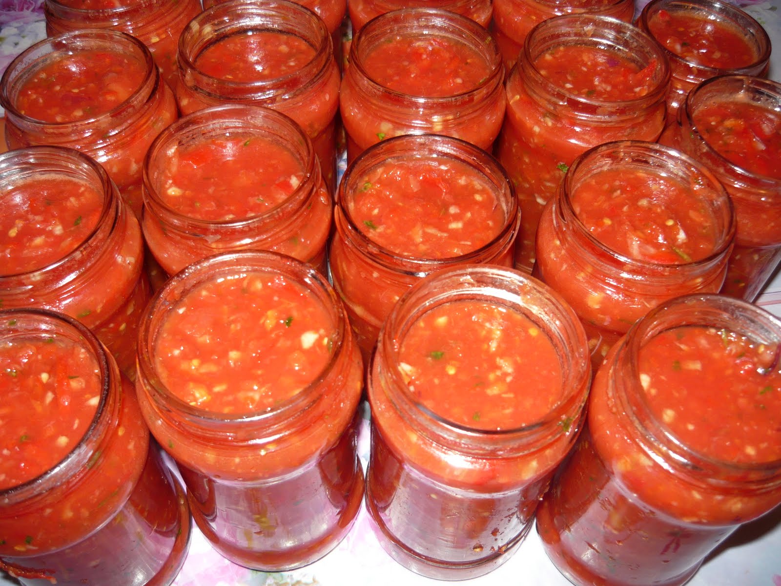 - adăugăm în final boiaua de ardei şi sarea peste legumele tocate mărunt, amestecăm bine totul şi punem acest amestec în borcanele în care dorim să conservăm sosul;
