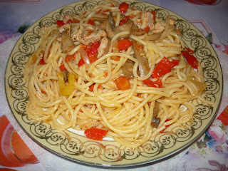 Pentru iubitorii pastelor, aşa cum sunt eu şi fiul meu, aceasta este o combinatie extraordinară de ardei dulci, pui suculent si busuioc!