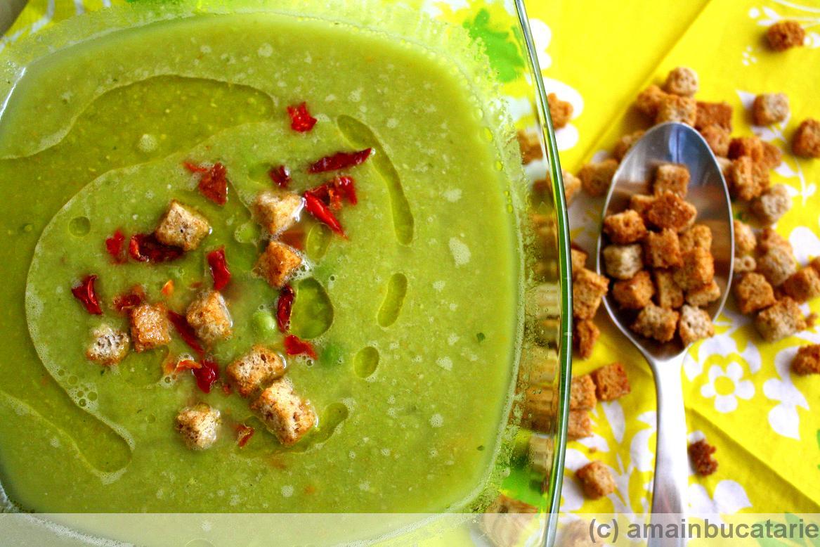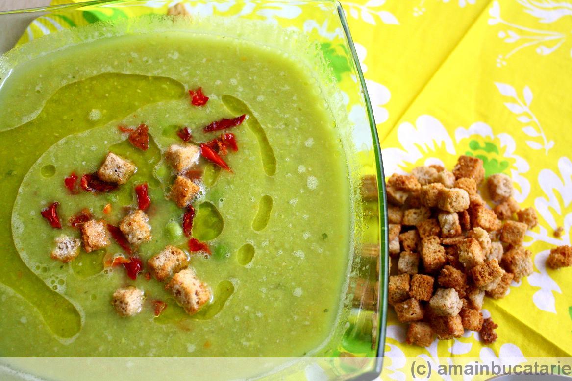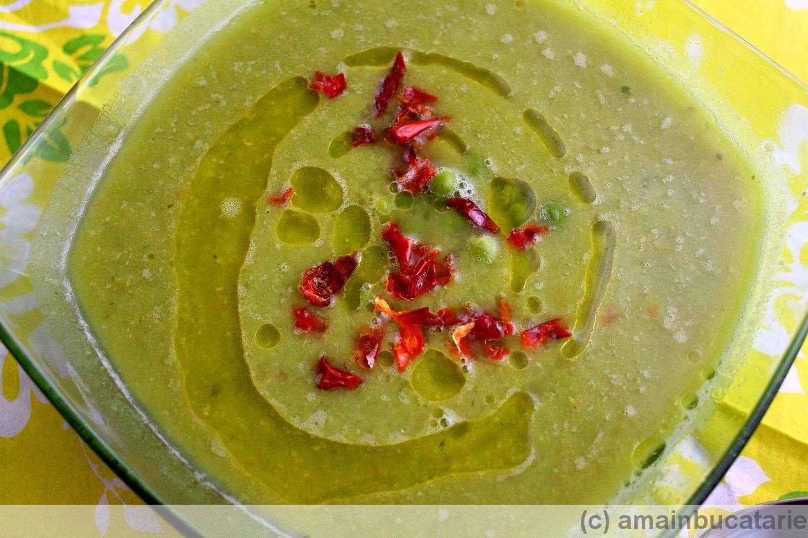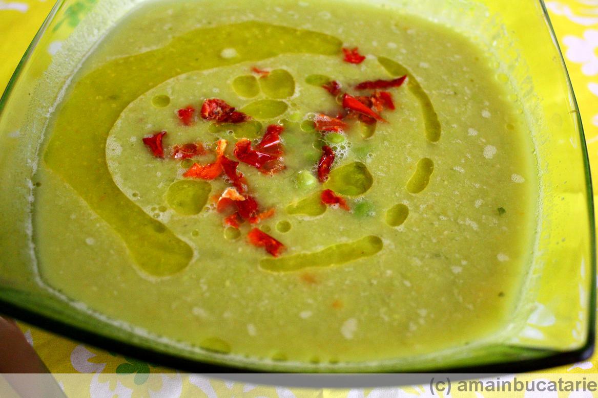 Serviti cald, decorand cu fulgi de ardei uscati, crutoane si ulei de masline.