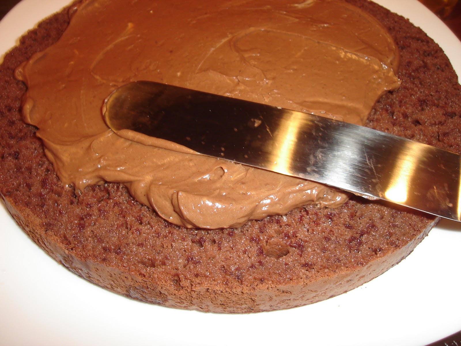 Blatul se taie in 3, se insiropeaza si se pune crema.