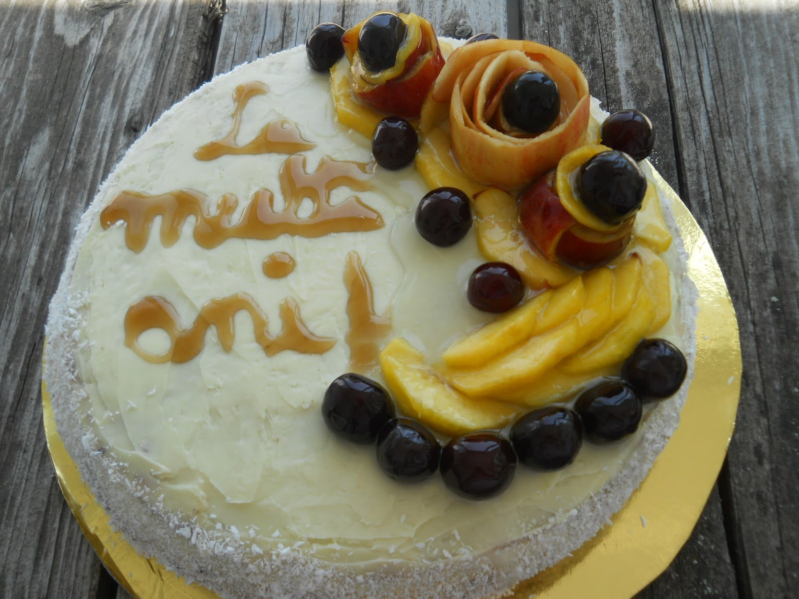 Nu am mai avut timp, din pacate, sa topesc si ciocolata neagra ca sa scriu La multi ani, si am folosit sirop de caramel. Au stat frumos literele, doar pana cand am facut pozele...