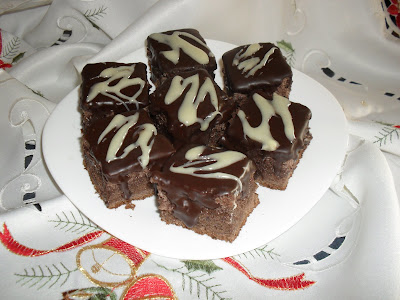 Dupa ce s-a racit blatul se taie in doua pe orizontala. Se aseaza prima foaie in tava, se insiropeaza, se pune crema si se niveleaza apoi se aseaza a doua foaie de blat insiropata si se da la frigider pentru cca 3-4 ore. Se taie in patrate dupa care se glazureaza fiecare bucata. Se lasa pana se raceste glazura apoi se orneaza cu ciocolata alba topita la bain-marie.