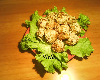 Se formeaza bile se uda putin cu apa si se dau prin susan , se prajesc in ulei sau se coc in cuptor.