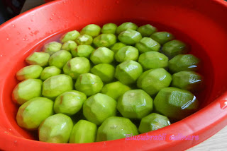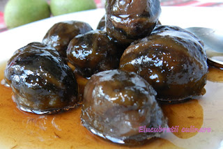 Se face un sirop nu prea legat din 3 căni cu apă și 1 kg zahăr în care se pun nucile.