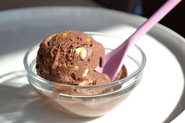 Sau poate ar trebui sa spun ciocolata inghetata, pentru ca atat de delicioasa si ciocolatoasa este incat parca ai manca inghetata cu gust de brownies. Reteta este preluat din cartea The Perfect Scoop a lui David Lebovitz, a carei mandra posesoare sunt de vineri. Nu stiu de ce mi-a luat asa de mult sa imi cumpar cartea asta geniala si nici de ce nu am facut inghetata de ciocolata pana acum dar stiu sigur ca odata ce aceste lucruri s-au intamplat topul inghetatelor mele preferate s-a modificat definitiv. Once you go black icecream, you never go back icecream. :D
