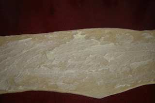 Luam o bucata si o intindem intr-o fasie lata de 10-15cm si lunga de 60-70cm.