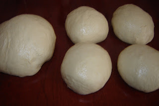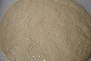 Cele 4 bile mai mici de aluat,le vom intinde in foi,nu prea subtiri.
