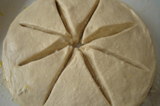 Am uns-o cu margarina topita si am pudrat cu faina.