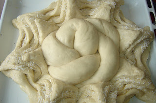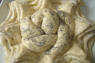 Cand este gata,ungem cu ou batut,presaram cu mac in mijloc si dam la cuptorul incins de dinainte, cam 40 de minute.