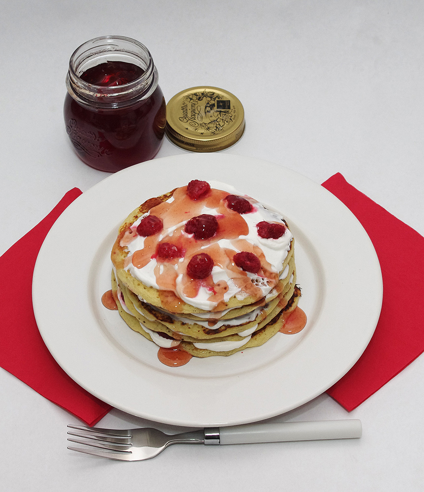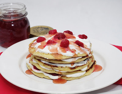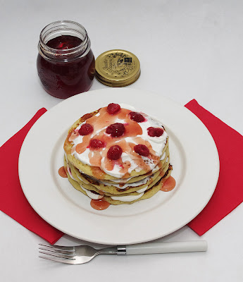 O idee de mic-dejun. Din categoria confort food...or nu? : De asta data m-am rasfatat putin cu niste pancakes cu zmeurici si frisca. Love it!