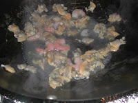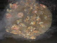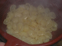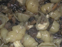 Pastele sunt mancaruri foarte rapide care merg in foarte mule combinatii, si care satisfac gusturi destul de pretentioase. De la pastele simple cu ulei de masline sau cu sos de rosii, la pastele vegetale cu legume, salate de paste, supe de paste, paste cu branza si oua, paste cu peste si fructe de mare si paste cu carne, pastele sunt exceptionale. Reteta de astazi: paste scoici cu scoici si ciuperci. Necesar: 150 gr fructe de mare (eu am avut ceva carne de scoici si cativa creveti), 350 gr ciuperci, 150 gr paste scoici, 70 gr mozzarela, 2 linguri sos de soia, 2 linguri sos de peste, condimente, 3 linguri ulei, 50 gr frisca lichida. Se calesc fructele de mare in ulei, se adauga sosul de soia si cel de peste. Se calesc 3 minute dupa care se adauga ciupercile taiate marunt. Se stir-uesc aprox. 10 min dupa care se adauga frisca. Se fierb pastele in apa clocotita cu sare aprox 6 min. Se amesteca pastele cu mozzarela taiata cuburi, cu ciupercile si cu carnea de scoici. Se servesc fierbinti. Ciao!