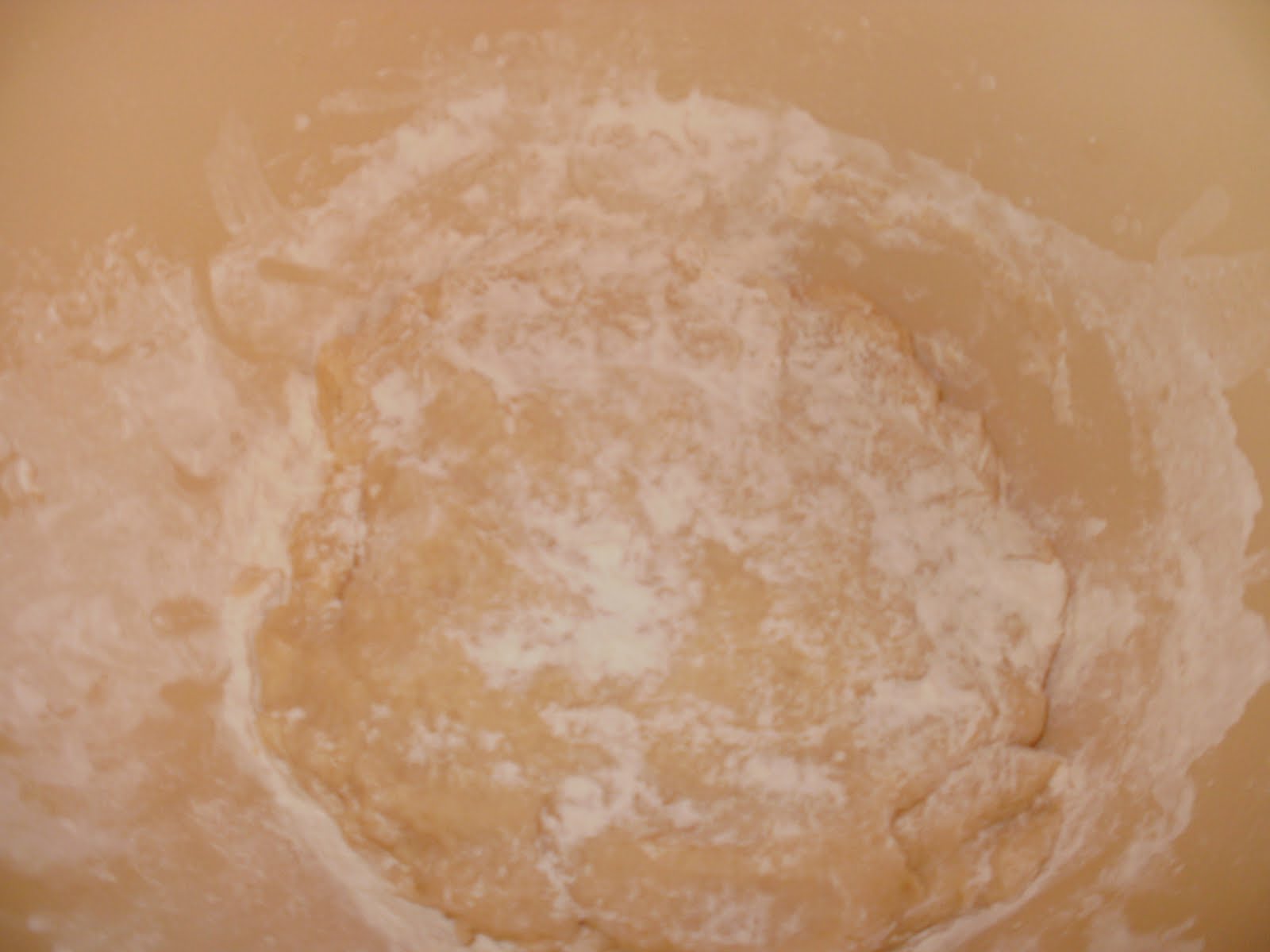Se amesteca cu telul pana se omogenizeaza compozitia , treptat incepem sa adaugam faina si framantam pana se formeaza aluatul.