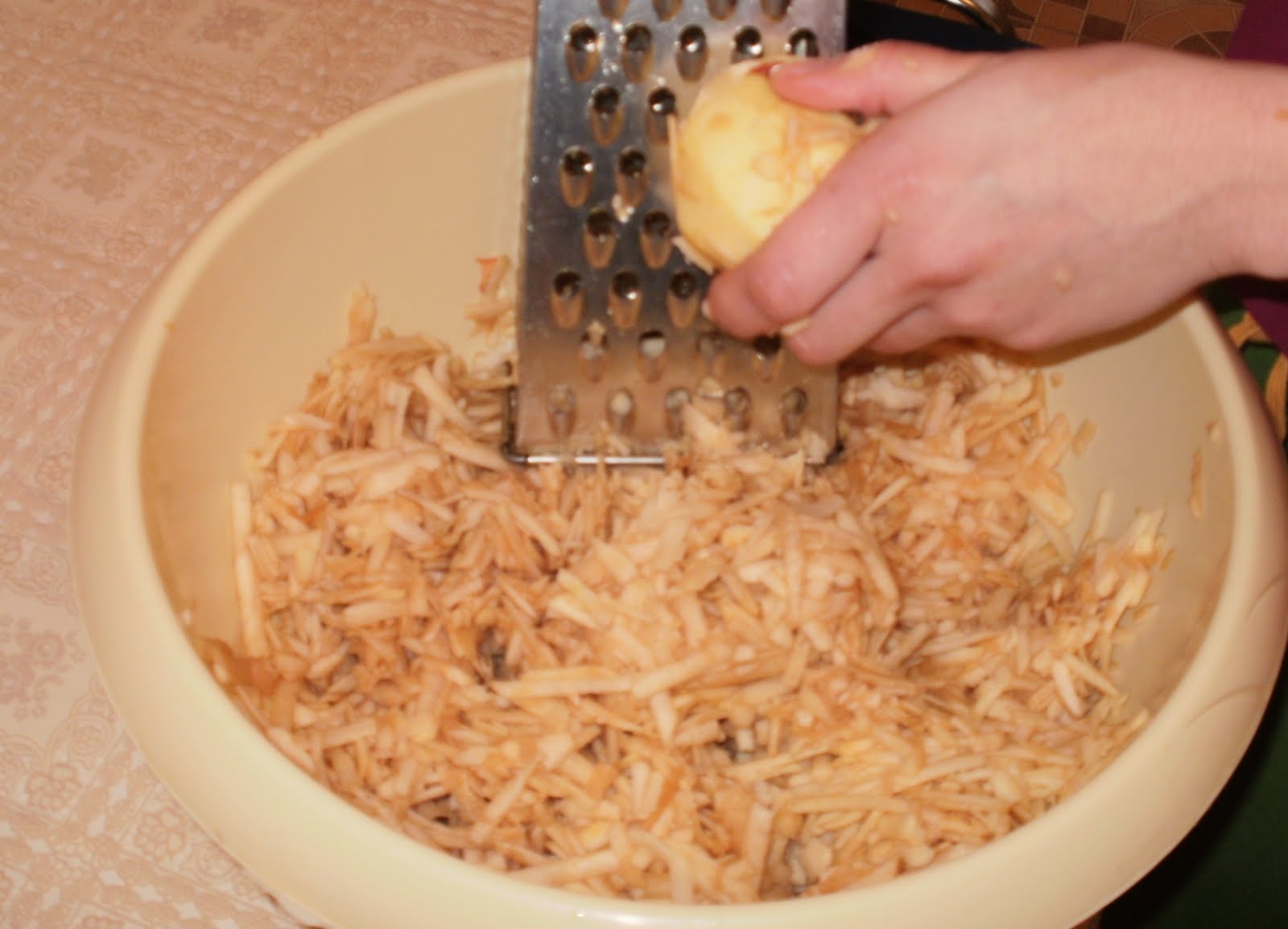 Curatam merele de coaja, le spalam, apoi le dam prin razatoarea cea mai mare.