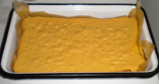 Se pune compozitia in tava tapetata cu hartie de copt si se da la cuptorul incins, la 180 de grade aproximativ 30 de minute. Faceti testul cu scobitoarea.