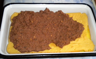 Blatul ori se face ca un pandispan - fiecare cum prefera, eu il fac cu albusurile spuma la care adaug zaharul, galbenusurile si apoi faina cu praful de copt plus aromele, ori, daca e blatul de post, se amesteca ingredientele pana la omogenizarea completa.