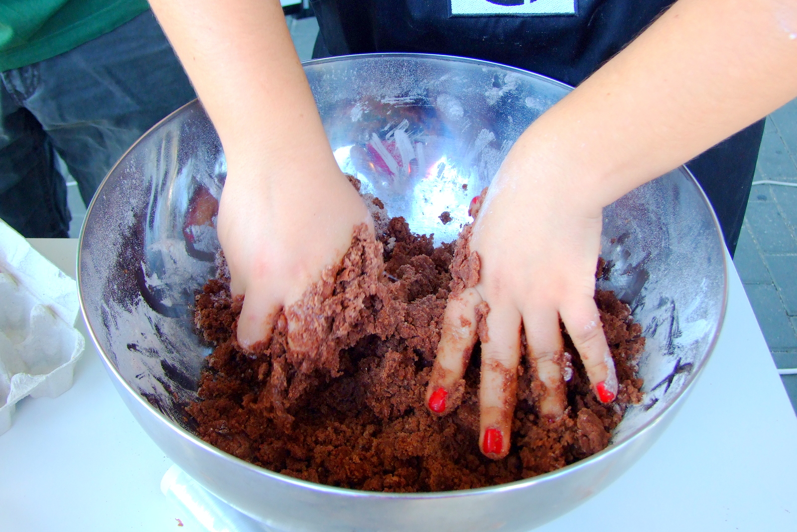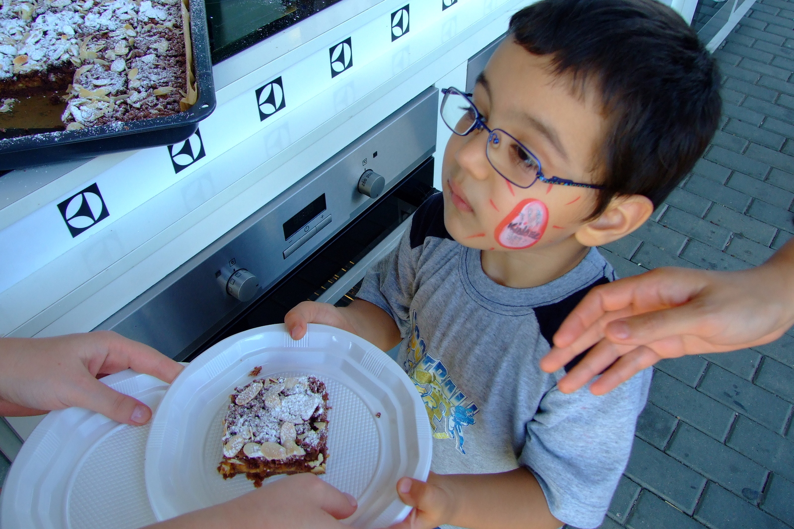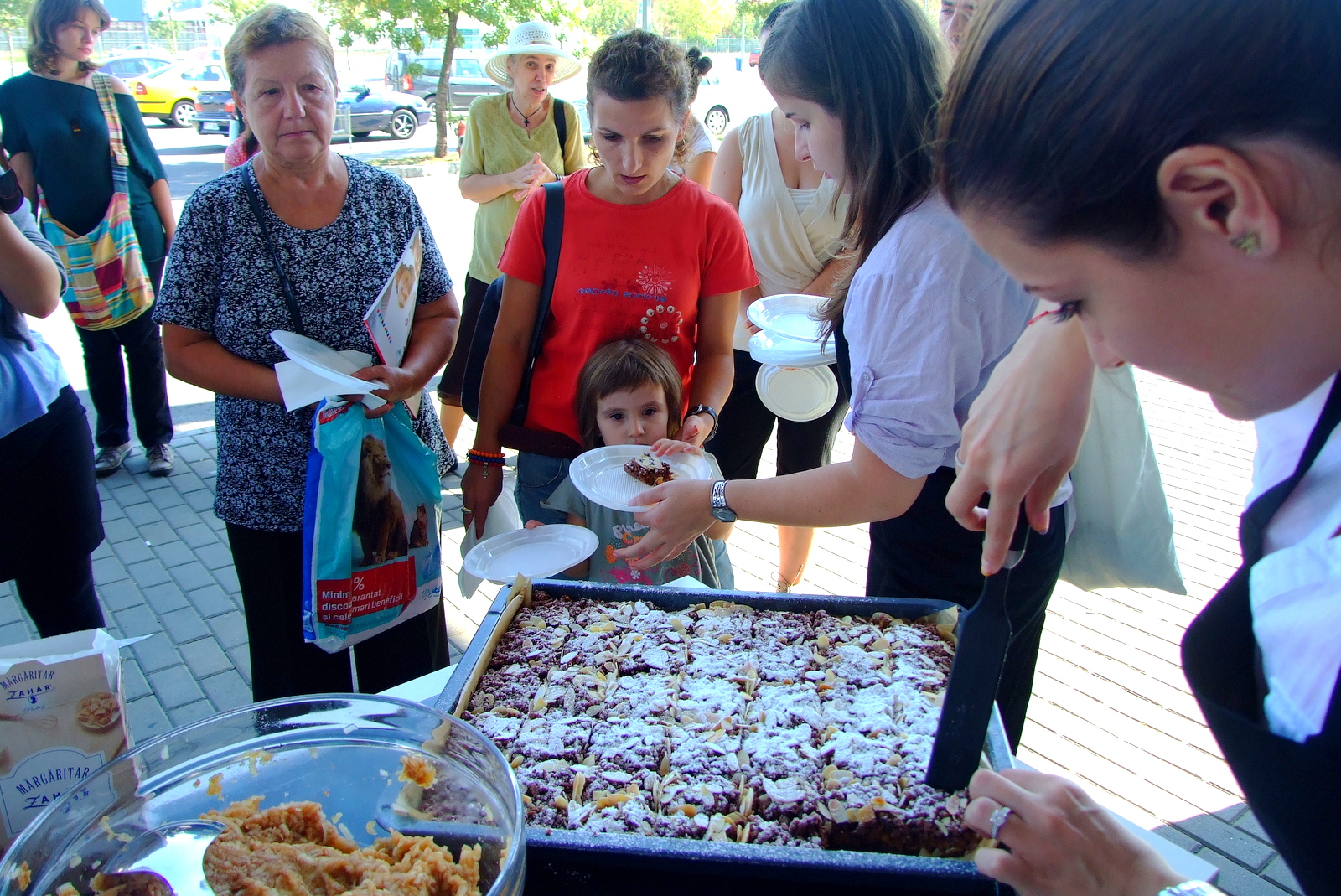 Am ales mere pentru că merele ne sunt cele mai la îndemână fructe de toamnă în general. Sigur că eu aș fi făcut o tartă, dar câte tarte să fac pentru a obține 100 de porții și de câte forme de tarte aș fi avut nevoie…? Am abandonat ideea de tartă dar nu de tot, pentru că mi-am amintit de rețeta asta de prăjitură cu mere și cacao pe care am văzut-o la Adi Hădean și pe care am făcut-o și eu de două ori și este tare bună și seamănă cumva cu o tartă.