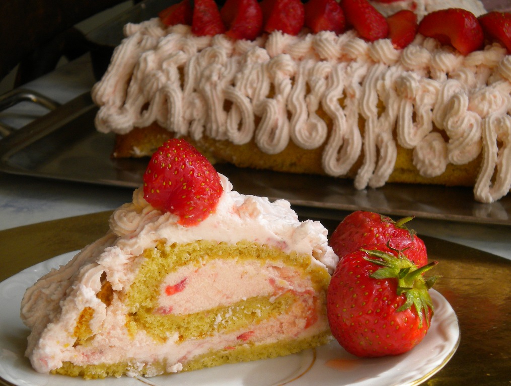 De onomastica tatalui meu, Constantin, am facut doua deserturi oarecum asemanatoare. Primul dintre ele a fost o rulada cu crema de capsune.