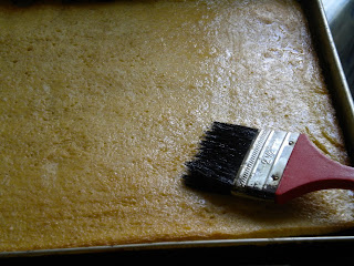 Am facut testul cu scobitoarea si cand a fost gata am scos tava lasand sa se raceasca blatul in tava.
