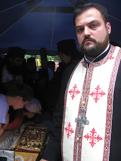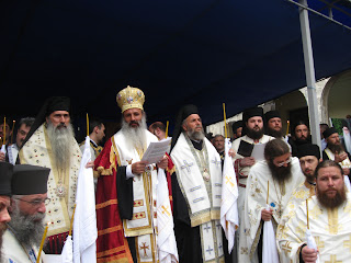 Trupul neinsufletit al Parintelui Arsenie Papacioc a fost depus, joi dimineata, pe scena special amenajata in curtea Manastirii “Sfanta Maria”, iar, de la ora 10.00, un sobor de ierarhi si preoti, in frunte cu Mitropolitul Moldovei şi Bucovinei, Inaltpreasfintitul Teofan, Arhiepiscopul Dunarii de Jos, Inaltpreasfintitul Casian, şi Arhiepiscopul Tomisului, Inaltpreasfintitul Teodosie, a savarsit Sfanta Liturghie.Din soborul de preoti care au participat la slujba de inmormantare a facut parte si Parintele Petru-Ciprian Pricop,Preot Paroh al Bisericii "Nasterea Sfantului Ioan Botezatorul" Constanta.