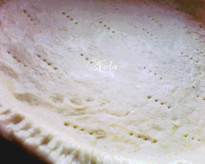 Se amesteca untul cu faina si cu un praf de sare .Se bate oul cu lingura de apa de rece se adauga peste faina si unt ,se framanta pana se face o coca omogena .Se formeaza un disc ca pentru forma tartei se impacheteaza in folie si se da la rece 2 ore .