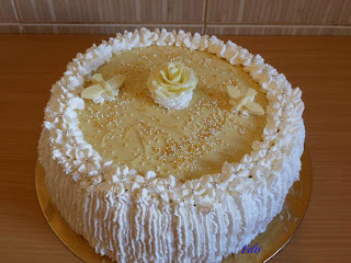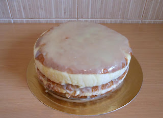 - cu glazura de ciocolata alba topita la baie de aburi (am vrut din cea topita pe foc cu frisca... da nu a iesit)